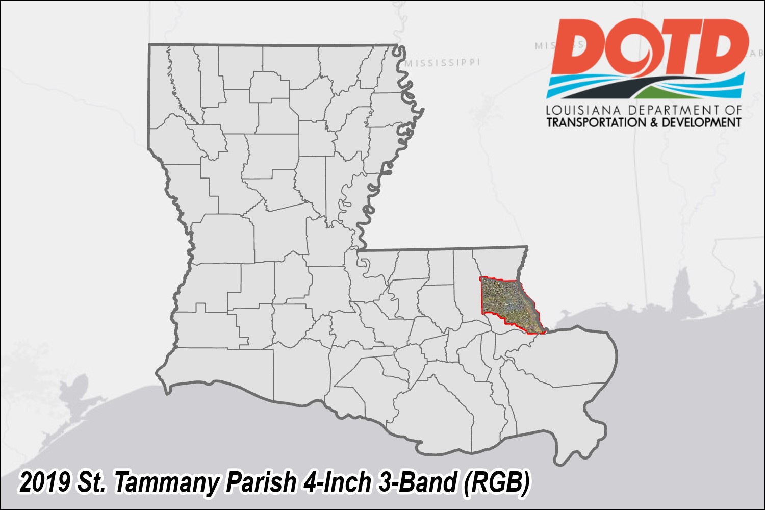 Description: This 2019 3-Band (RGB) Aerial Imagery has been provided by DOTD and is hosted as an image service by Louisiana DOTD. This service has a spatial resolution of approximately 4-Inch(s) and an extent covering St. Tammany Parish areas of interest. This data has been tiled into 1500-meter cells based on the US National Grid (USNG). The source data for this service has horizontal coordinate system 'NAD 1983 (2011) UTM Zone 15N (EPSG:6344)' and vertical coordinate system 'NAVD88 height - GEOID12B (EPSG: Custom)'. The source data is in TIF format. The no data value for this data is 0. The source data bit depth is 8-Bit Unsigned. This data is available for download. This data was provided to Louisiana DOTD by a commercial vendor and has been made publicly available.For more information on this and other data provided by DOTD please visit https://data-ladotd.opendata.arcgis.comThis data has been developed from the best available sources to ensure accuracy and reliability; however, the entire risk as to the quality and performance of the data is assumed by the user. The data herein, including but not limited to geographic data, tabular data, analytical data, electronic data structures or files, are provided 'as is' without warranty of any kind, either expressed or implied, including, but not limited to, the implied warranties of merchantability and fitness for a particular purpose. In no event shall the LADOTD be liable for direct, indirect, incidental, consequential or specific damages of any kind, including, but not limited to, loss of anticipated profits or benefits arising out of use of or reliance on the data. The user should refer to the accompanying metadata notes for a description of the data and data development procedures. The data may not be suitable for all high-precision measurement applications such as property transfers or other uses that might require highly accurate measurements of the earth's surface. Distribution of the data is intended for informational purposes and should not be considered authoritative for navigational, engineering, legal or other site-specific uses. The data is provided free to use in any product or publication, however no warranty, expressed or implied is made with regard to the accuracy of data or the spatial accuracy, and LADOTD accepts no liability for any damages or misrepresentation caused by inaccuracies in the data or as a result of changes to the data caused by system transfers or other transformations or conversions, nor is there responsibility assumed to maintain the data in any manner or form.