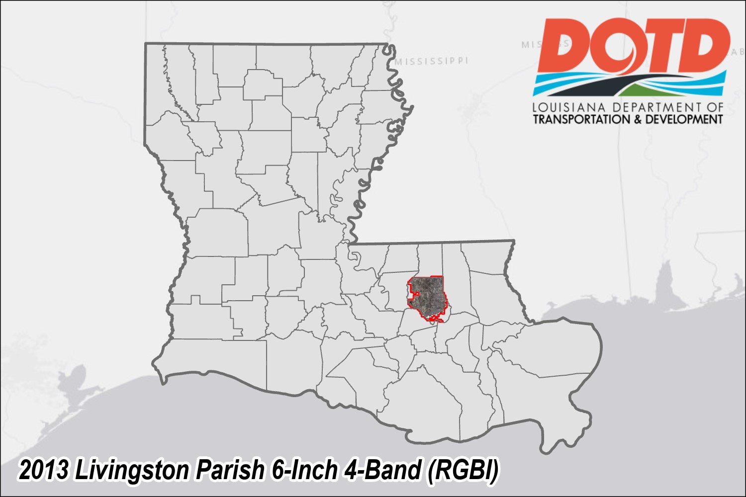 Description: This 2013 4-Band (RGBI) Aerial Imagery has been provided by DOTD and is hosted as an image service by Louisiana DOTD. This service has a spatial resolution of approximately 6-Inch(s) and an extent covering Livingston Parish areas of interest. This data has been tiled into 1500-meter cells based on the US National Grid (USNG). The source data for this service has horizontal coordinate system 'NAD 1983 (2011) UTM Zone 15N (EPSG:6344)' and vertical coordinate system 'NAVD88 height - GEOID12B (EPSG: Custom)'. The source data is in TIF format. The no data value for this data is 0. The source data bit depth is 8-Bit Unsigned. This data is available for download. This data was provided to Louisiana DOTD by a commercial vendor and has been made publicly available.For more information on this and other data provided by DOTD please visit https://data-ladotd.opendata.arcgis.comThis data has been developed from the best available sources to ensure accuracy and reliability; however, the entire risk as to the quality and performance of the data is assumed by the user. The data herein, including but not limited to geographic data, tabular data, analytical data, electronic data structures or files, are provided 'as is' without warranty of any kind, either expressed or implied, including, but not limited to, the implied warranties of merchantability and fitness for a particular purpose. In no event shall the LADOTD be liable for direct, indirect, incidental, consequential or specific damages of any kind, including, but not limited to, loss of anticipated profits or benefits arising out of use of or reliance on the data. The user should refer to the accompanying metadata notes for a description of the data and data development procedures. The data may not be suitable for all high-precision measurement applications such as property transfers or other uses that might require highly accurate measurements of the earth's surface. Distribution of the data is intended for informational purposes and should not be considered authoritative for navigational, engineering, legal or other site-specific uses. The data is provided free to use in any product or publication, however no warranty, expressed or implied is made with regard to the accuracy of data or the spatial accuracy, and LADOTD accepts no liability for any damages or misrepresentation caused by inaccuracies in the data or as a result of changes to the data caused by system transfers or other transformations or conversions, nor is there responsibility assumed to maintain the data in any manner or form.